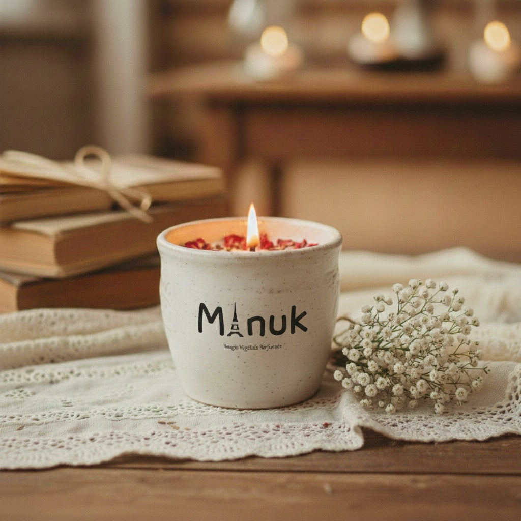 Créez votre bougie unique en choisissant le parfum, le design et la décoration qui vous ressemblent. Chaque création est 100% végétale et biologique, et parfumée avec des fragrances premium de Grasse pour une diffusion délicate et raffinée.
