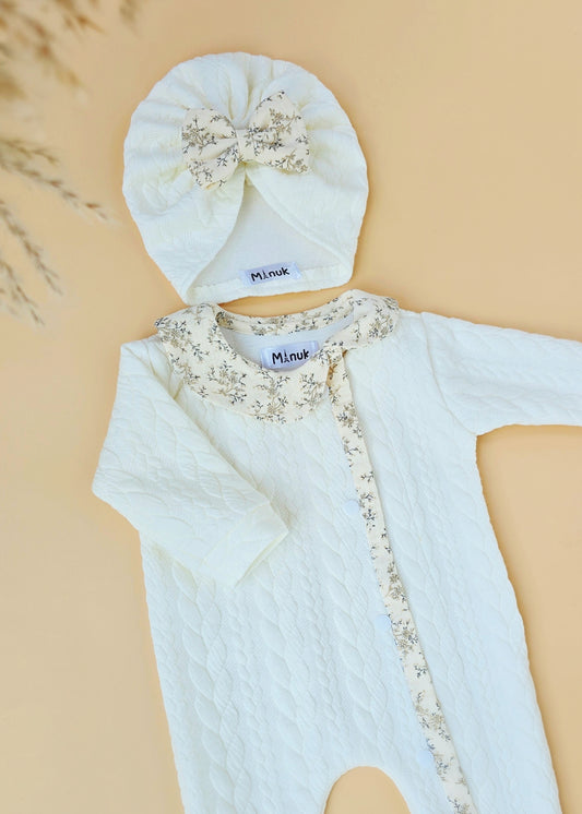 Ensemble Naissance Pyjama Personnalisé col Claudine Turban bébé fille