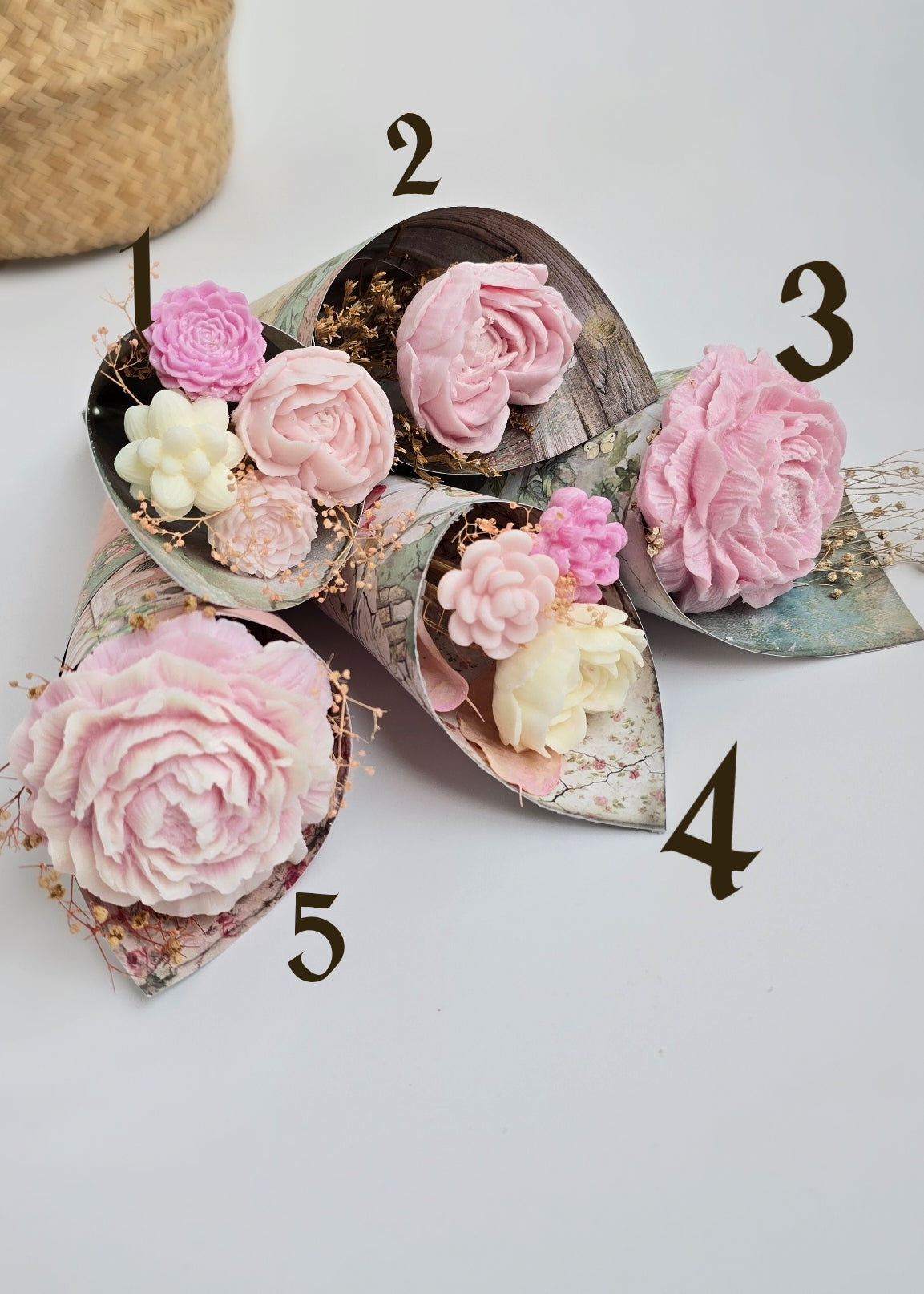 - Fleurs séchées soigneusement sélectionnées